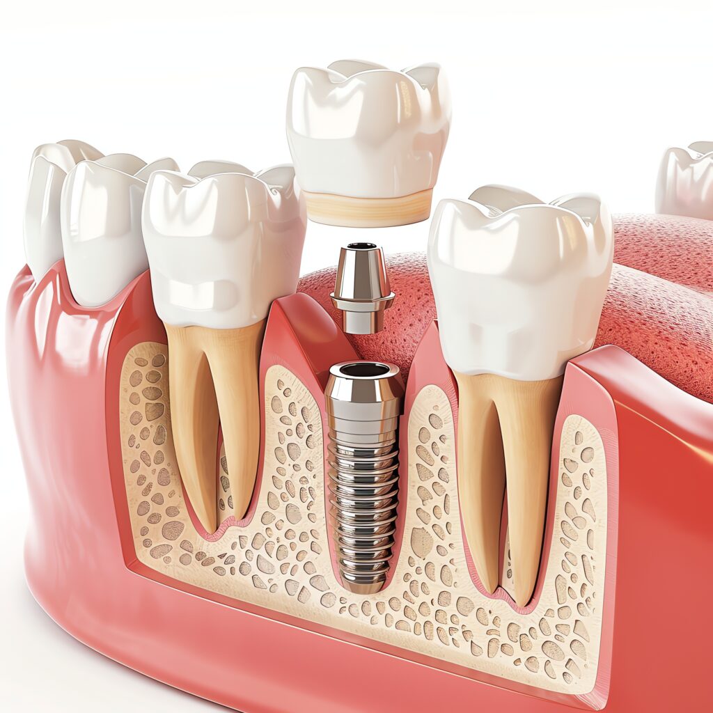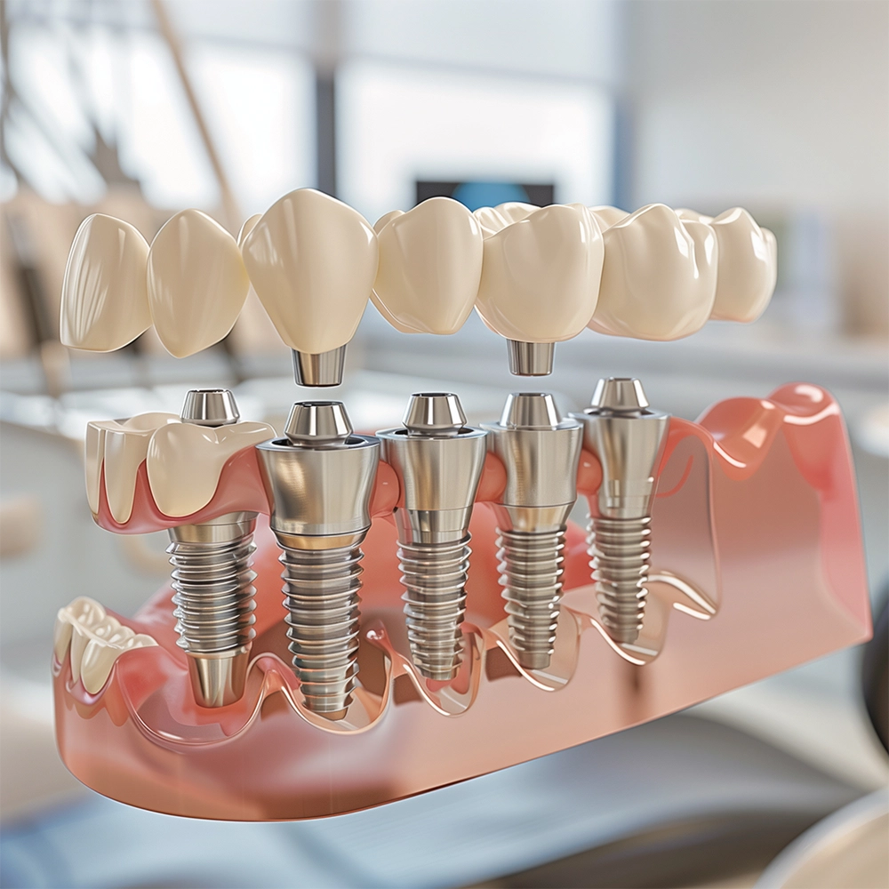 Mit Zahnimplantaten lassen sich Einzelzahnlücken ebenso wie Freiendsituationen oder größere Lücken mit mehreren fehlenden Zähnen schließen; mittels sogenannter All-on-Four-Implantaten können auch komplette Gebissprothesen eingesetzt oder abgebaute Kieferknochen wieder aufgebaut werden.